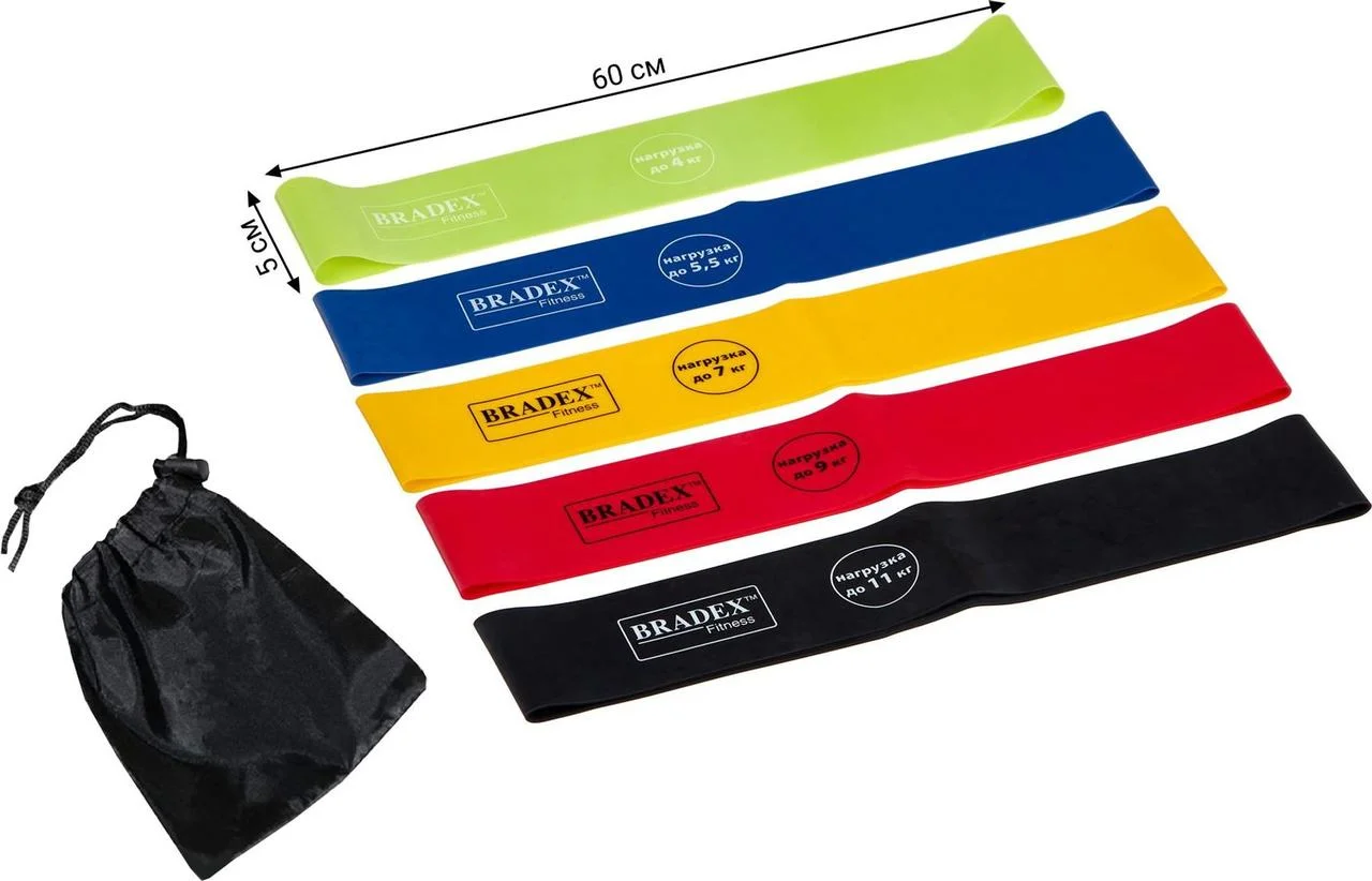 Набор из 5-ти резинок для фитнеса Bradex SF 0673, нагрузка до 4 / 5,50 / 7 / 9 / 11 кг купить в Могилеве по доступной цене