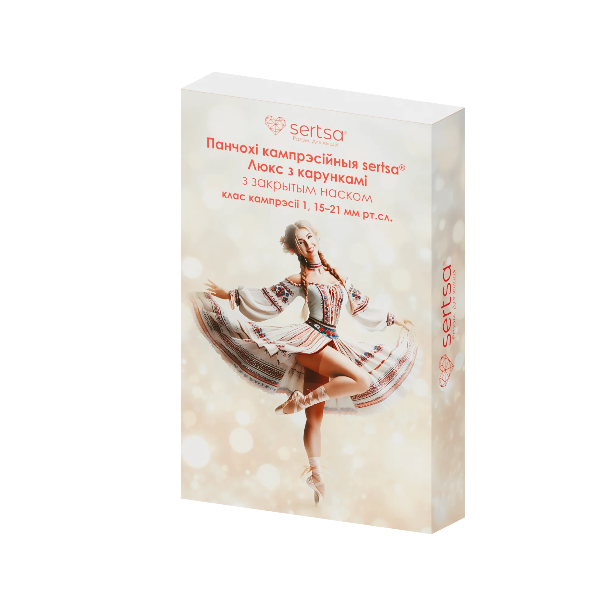 Чулки SERTSA® Люкс комбинируют в себе эргономичную градиентную компрессию класса I и элегантный кружевной верх. Мягкая закрытая носочная часть обеспечивает универсальность и надёжную фиксацию без давления на пальцы.