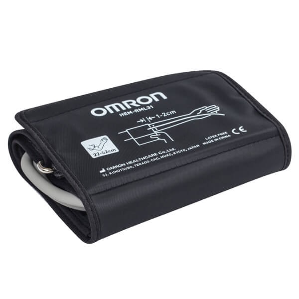 Манжета Omron Easy Cuff, изготовленная из нейлона, гипоаллергенная и универсальная; подходит для всех пользователей с длиной окружности плеча руки от 22 до 42 см.. Для детей рекомендуется использовать детскую, малую, манжету Omron CS2, модель HEM-CS24.