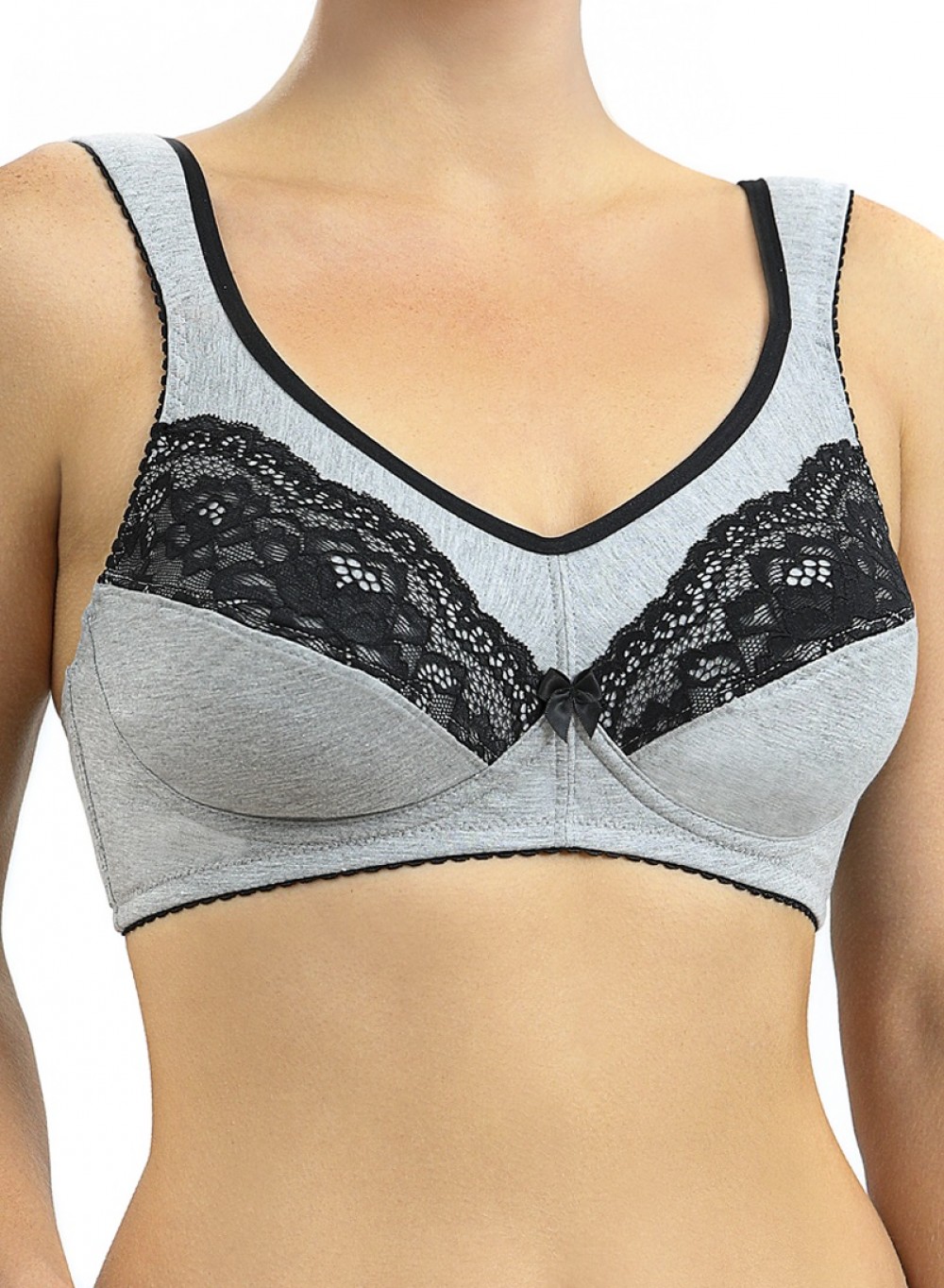 Бюстгальтер после мастэктомии Camelia 0287У для фиксации молочной железы, серый меланж / черный